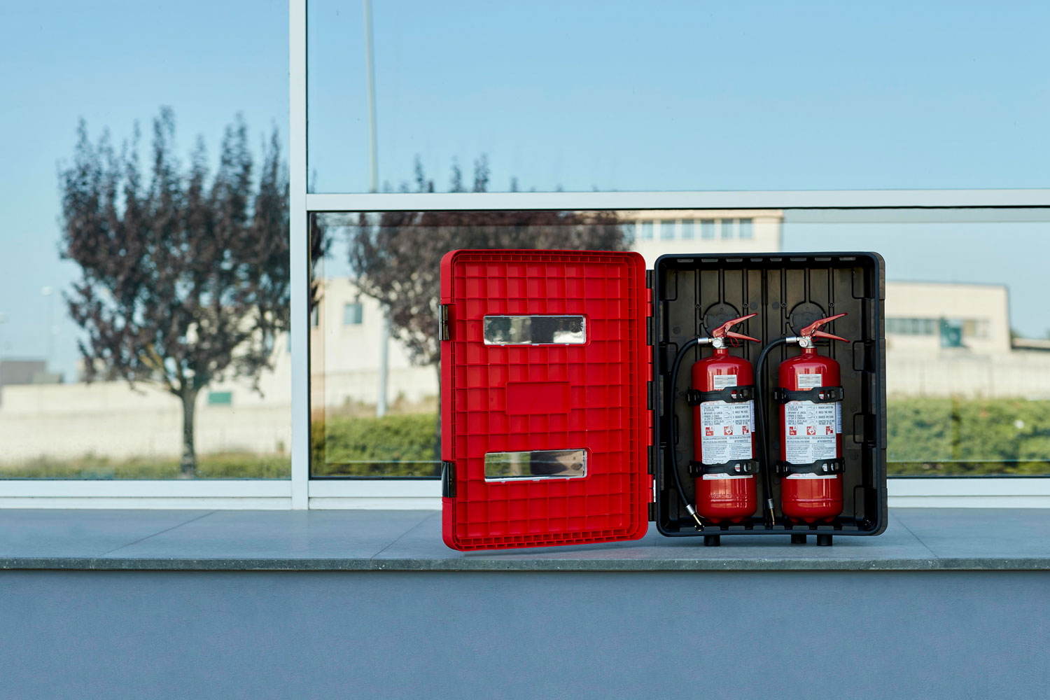Graças à vedação interna contra a entrada de poeira e água, o Dual abrigo duplo para extintores garante resistência e segurança no uso. Projetado para acomodar diferentes tamanhos de extintores e assegurar flexibilidade logística.
